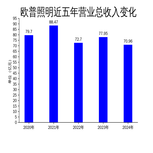 2025年5月1日,欧普照明发布了2024年年报。报告显示,公司全年实现营业收入70.96亿元,同比下降8.96%;归属于上市公司股东的净利润为9.03亿元,同比减少2.28%。尽管公司在智能照明领域持续发力,但整体业绩表现仍显疲软,尤其是在全球经济增速放缓的背景下,欧普照明的营收和利润双双下滑,凸显了其面临的挑战。